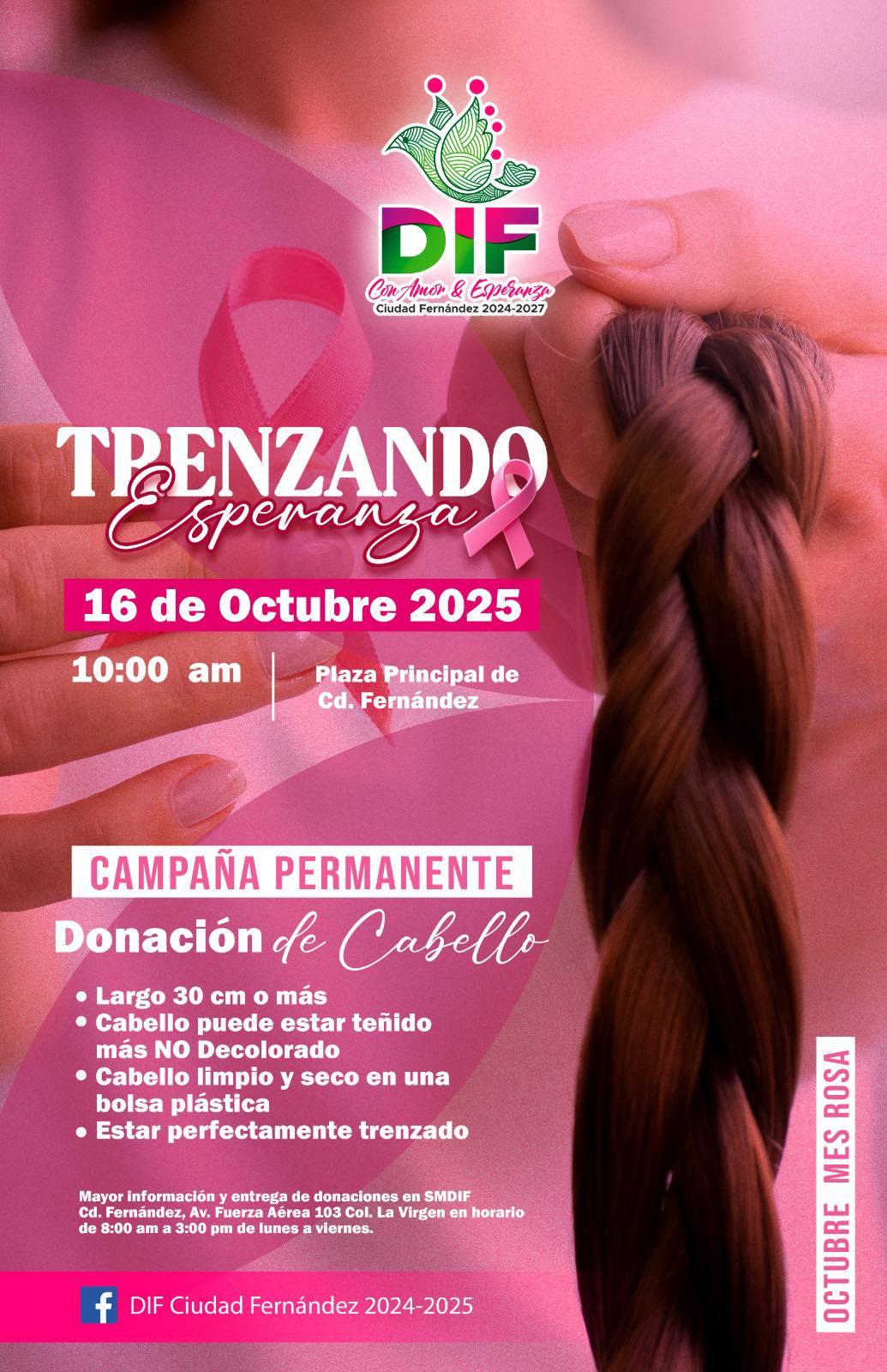 DIFSISTEMA MUNICIPAL DIF¡Dona tu cabello, dona esperanza! Comunicación DIF6 meses ago6 meses ago01 mins Navegación de entradas Previous: En el SMDIF Ciudad Fernández seguimos trabajando con empatía y cercanía hacia quienes más lo necesitan.Next: Ciudad Fernández se une a la lucha contra el cáncer de mama!