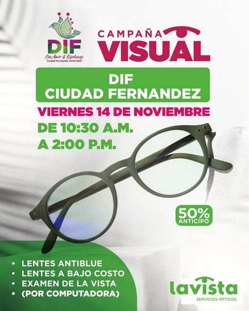 DIFSISTEMA MUNICIPAL DIF¡CUIDA TU VISIÓN! Comunicación DIF5 meses ago5 meses ago01 mins Navegación de entradas Previous: El DIF Municipal de Ciudad Fernández expresa su más sincero apoyo y solidaridad hacia nuestra compañera y amiga Perla Olvera Ibarra, ante la irreparable pérdida de su querida abuelita.Next: ¡Ya se siente la Navidad en Ciudad Fernández!